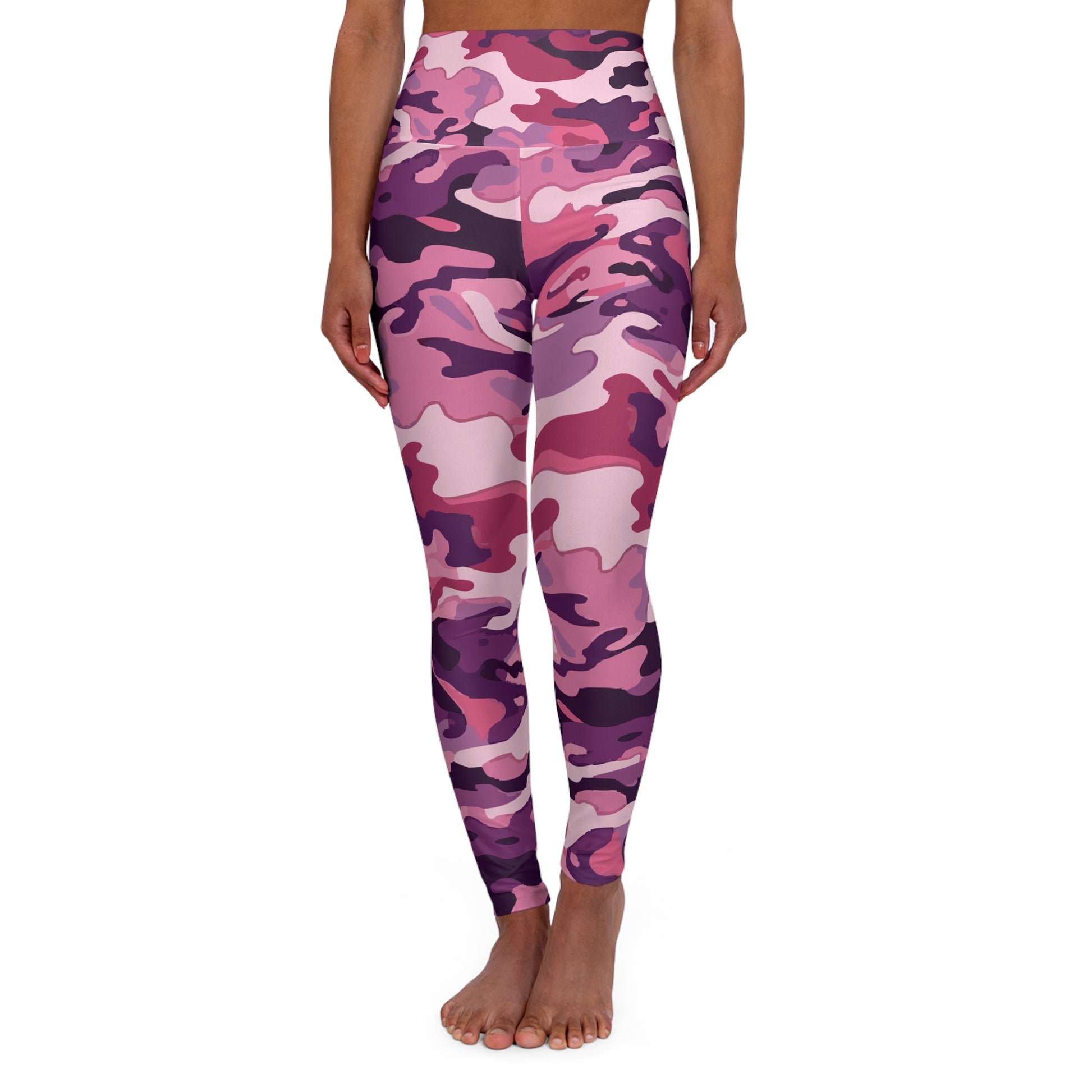Pink Purple Camo High Waisted Yoga Leggings, designed to elevate your workout wardrobe! These leggings boast a stunning all-over print that adds flair to any fitness ensemble. The smooth, high-rise waist not only offers a flattering silhouette but also ensures comfort during your most intense sessions. Experience ultimate freedom of movement with the 4-way stretch fabric, making them ideal for yoga, running, or lounging at home. Perfect for athletic individuals or those looking to embrace a stylish and active lifestyle, these leggings make a fantastic gift for fitness enthusiasts or loved ones embarking on their wellness journey. They are also a great choice for special occasions like International Women's Day, birthdays, or as a thoughtful gesture to motivate a friend. Capture attention and feel empowered while showcasing your unique style and commitment to fitness!